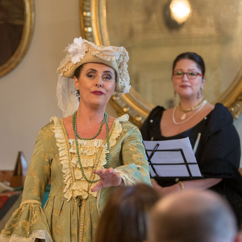 In questo pomeriggio ci hanno allietato il Soprano Mariangela La Palombara, il Tenore Alessandro Fantoni, la pianista Claudia Mariano accompagnati dalle voci narranti di Paola Perfetti e Ivan Ottaviani. Il piano del pomeriggio è stato seguito grazie ai testi di Ettore Radice.